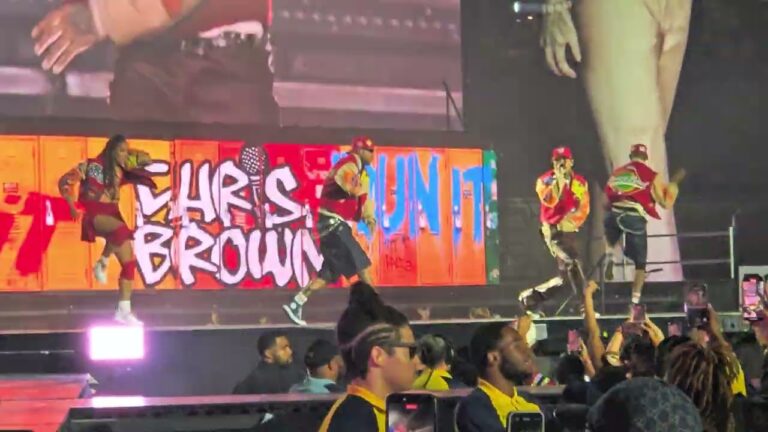 The lights drop, the crowd roars, and Washington, D.C. becomes the epicenter of R&B and hip-hop energy. As the opening notes of “Run It” hit, the Breezy Bowl explodes into motion — dancers flooding the stage, strobes slicing through the air, and Chris Brown stepping into the spotlight with the swagger that made him a global icon.